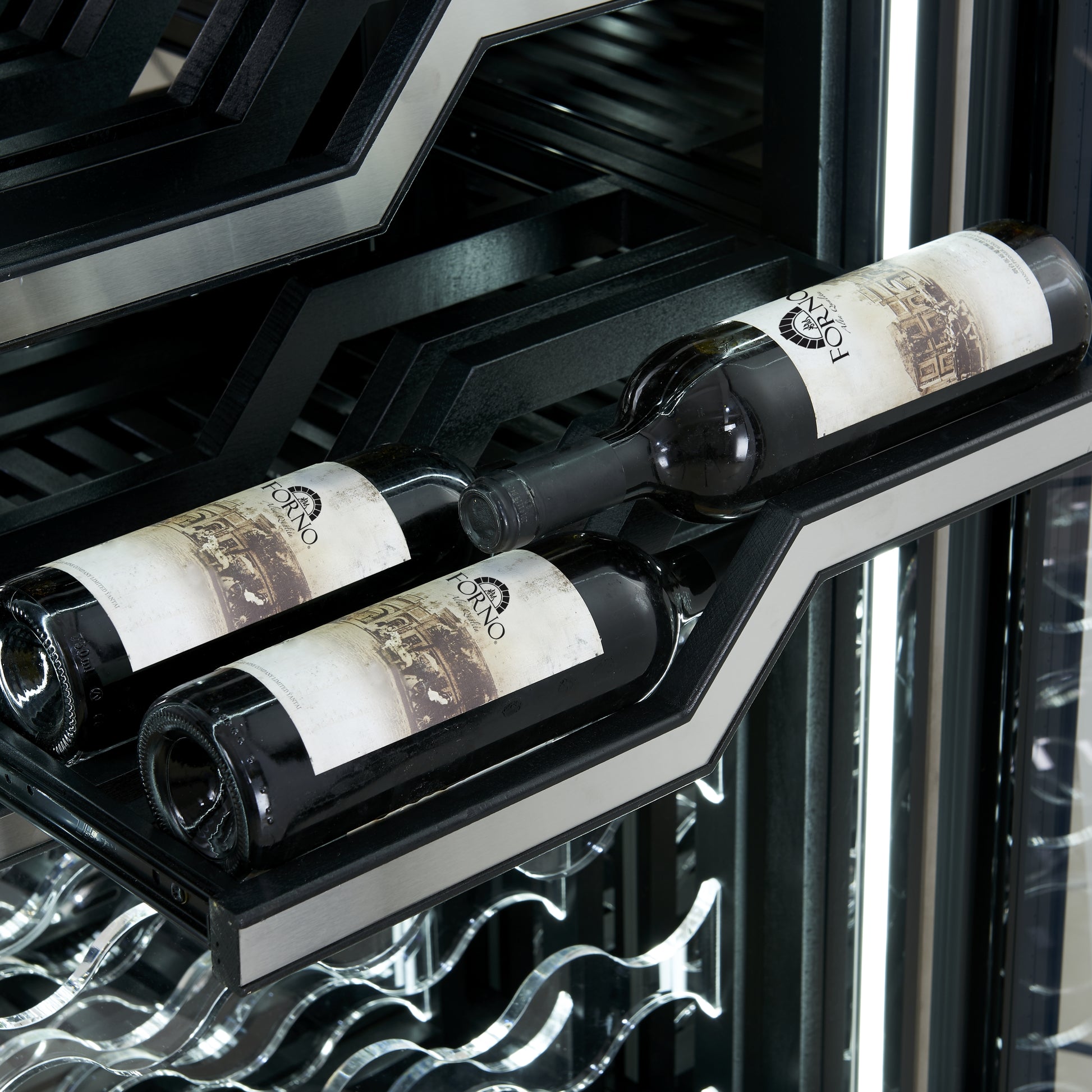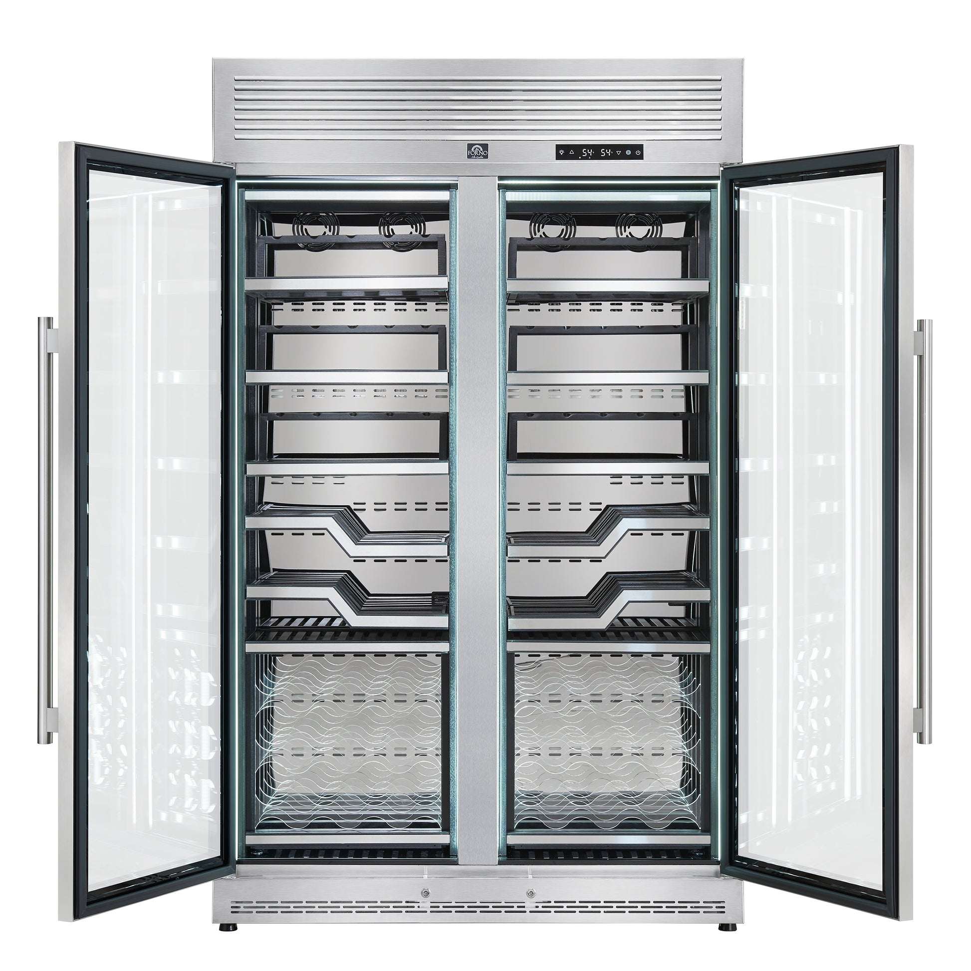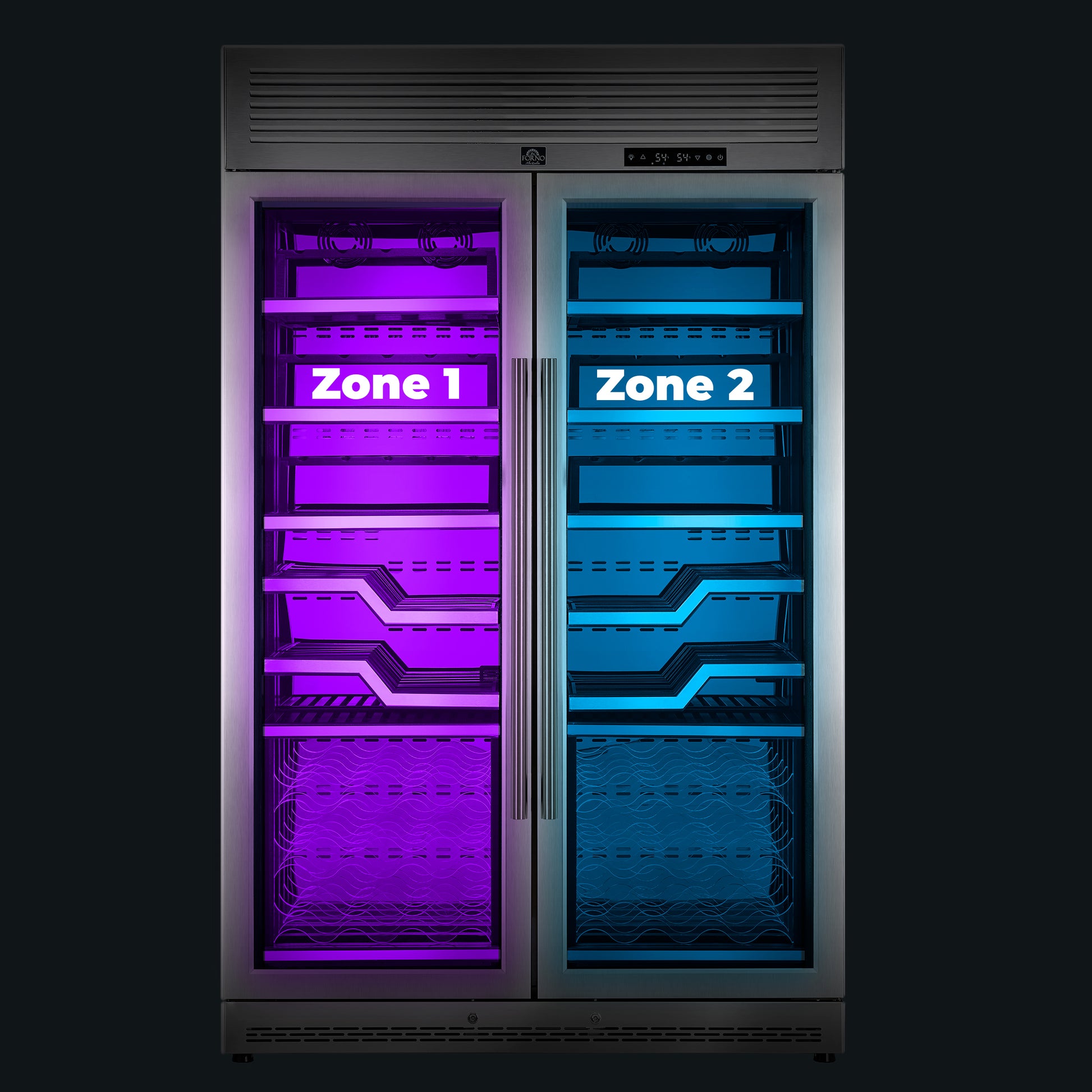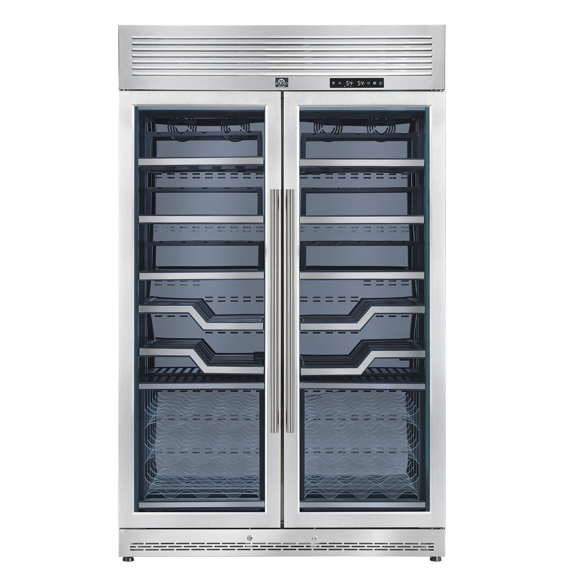 FORNO Abruzzo 48-Inch Dual Zone Wine Cellar, 102 Bottles, 24 cu. ft., Clear Acrylic Holders & Stainless Trim Shelves