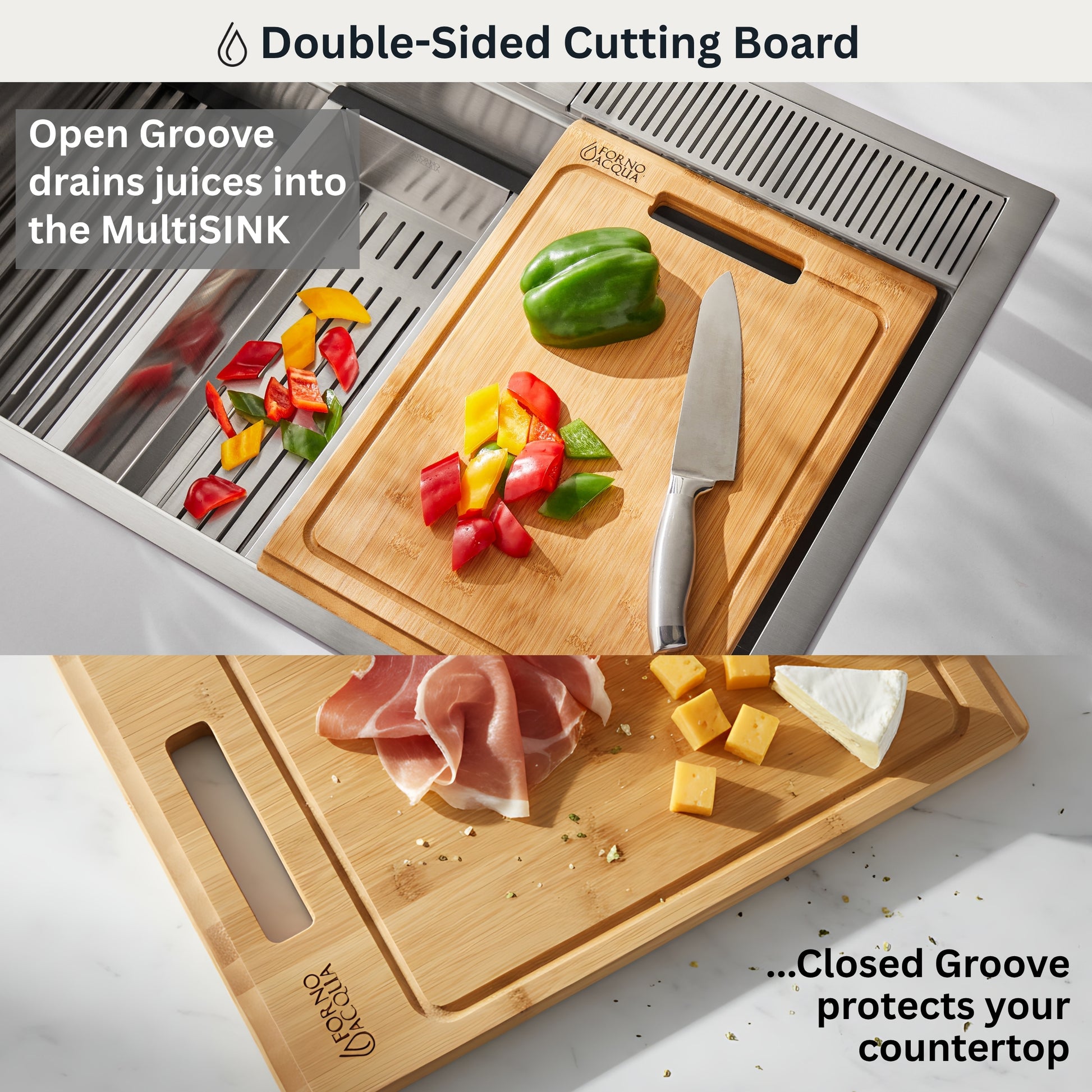 FORNO ACQUA 33 in. Drop-In/Undermount 3-Level Workstation Sink with Faucet, Waterfall & Glass Rinser