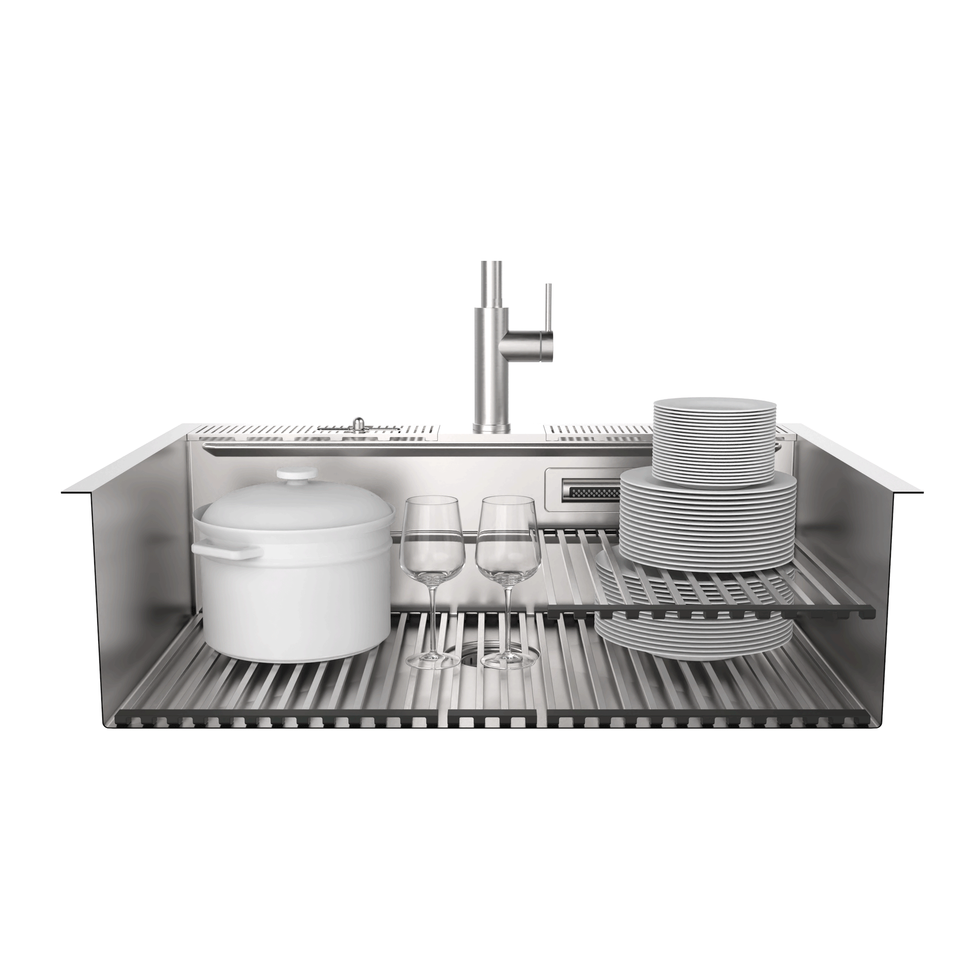 * Unique 10 in. Deep Double Basins Handle Large Cookware. More Space, Less Splash