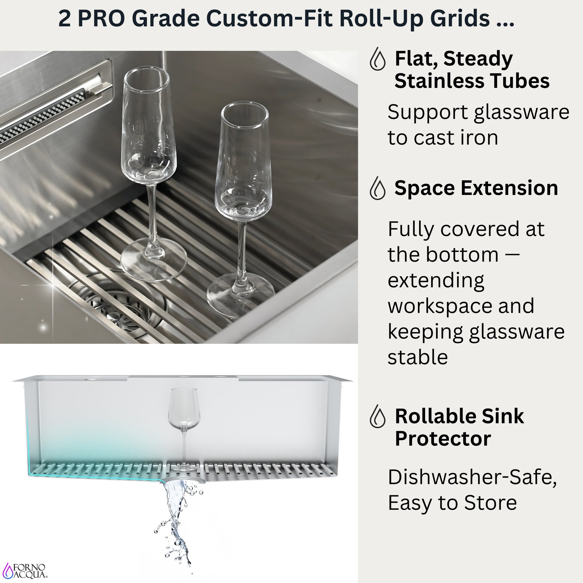 * 2 Flat Stainless Steel Roll-Up Grids Protect Sink Bottom, Extend Workspace & Keep Glassware Stable — Dishwasher-Safe
