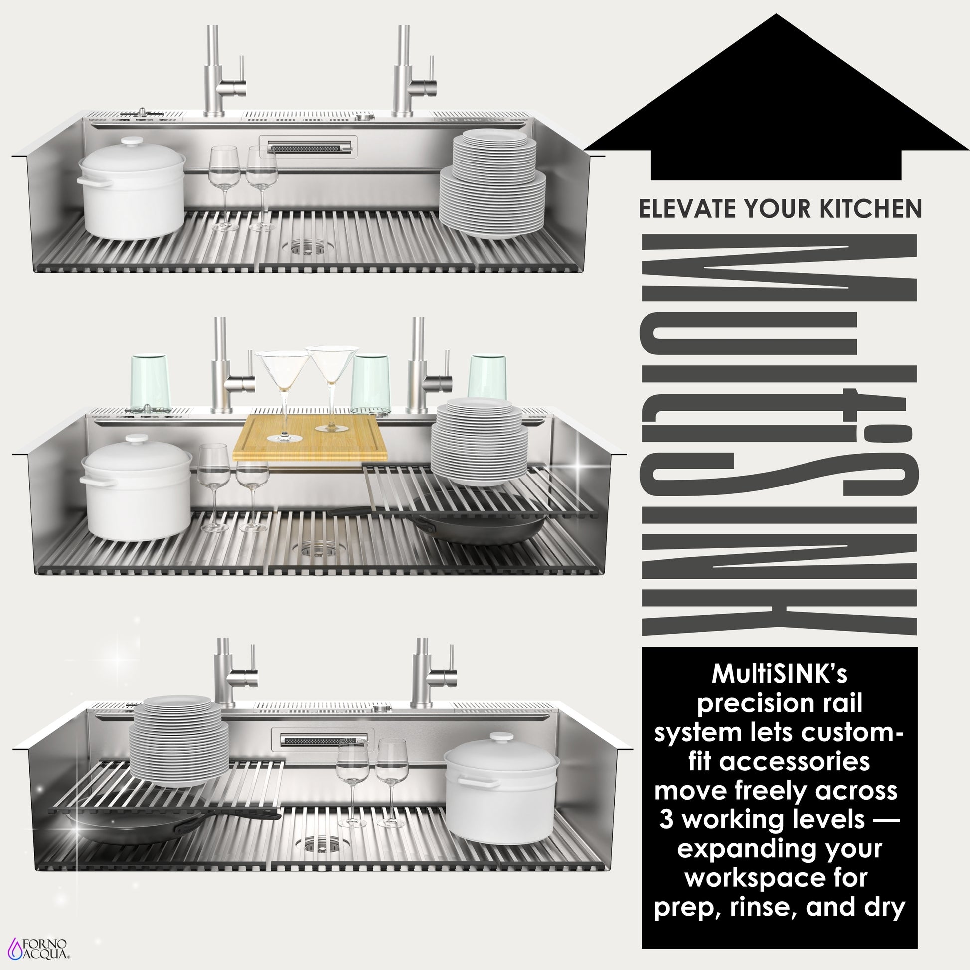 * Premium Custom-Fit Accessories Move Freely Across All 3 Levels for Flexible Prep, Rinse & Dry