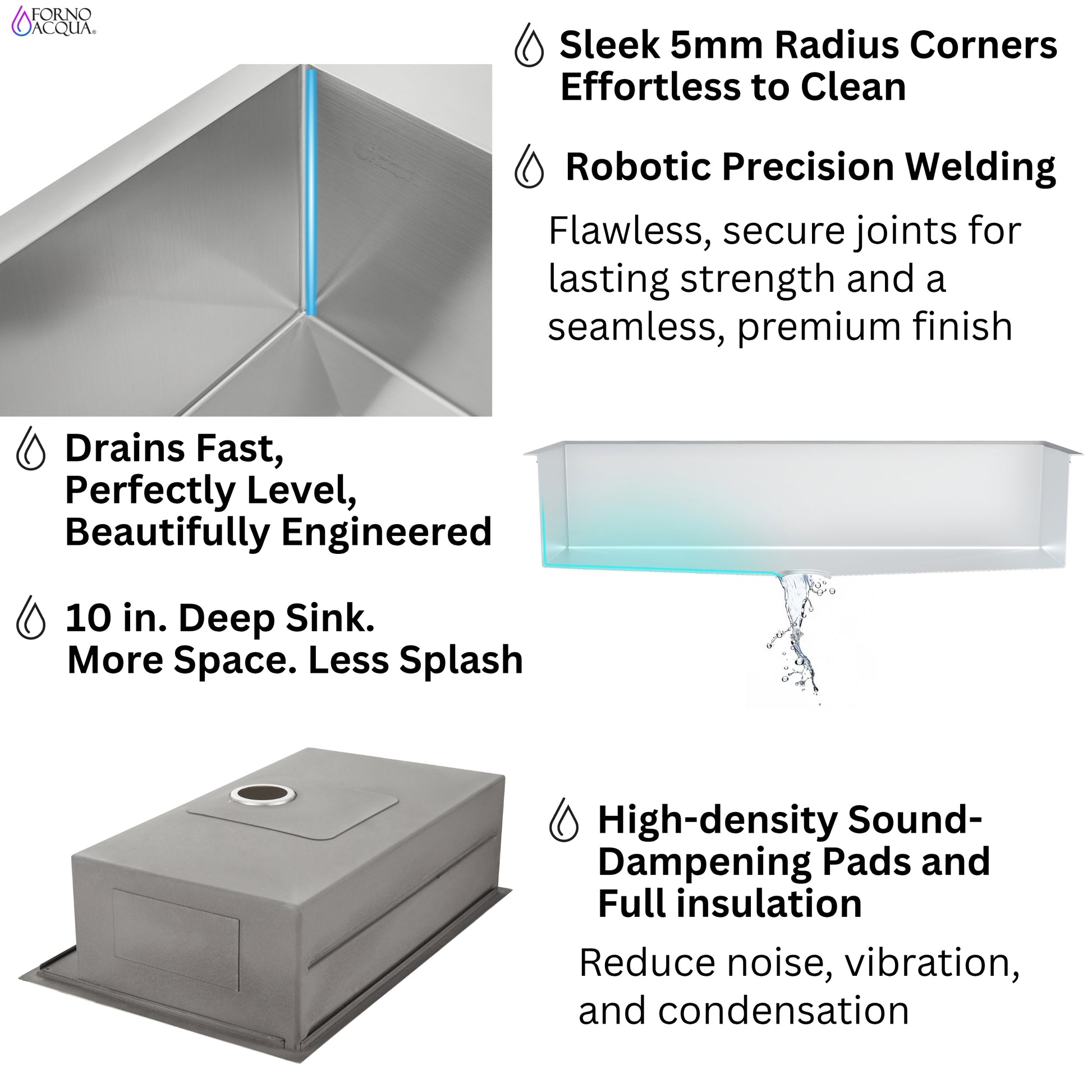 FORNO ACQUA 45 in. Undermount 3-Level Workstation MultiSINK with Custom-Fit Accessories