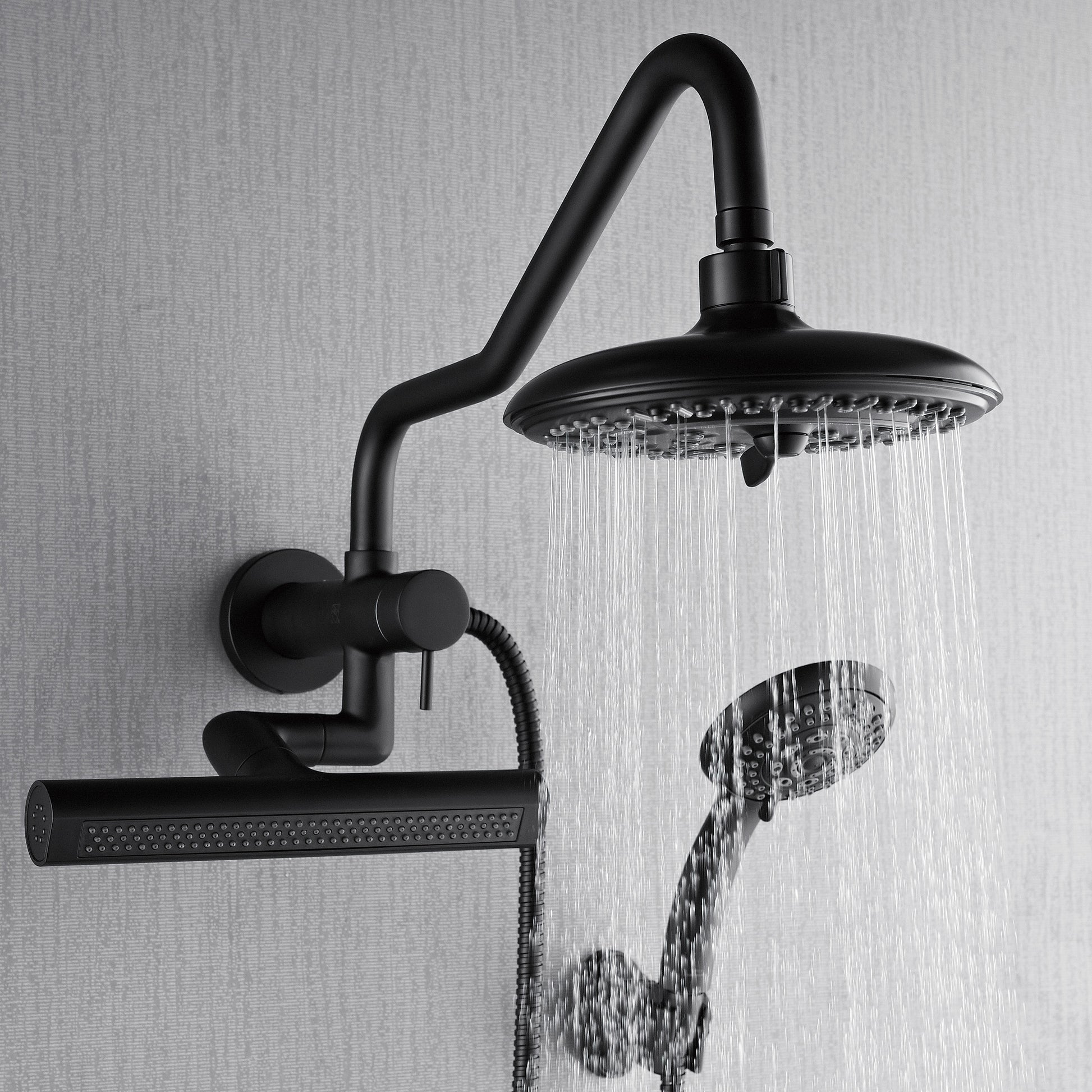 Forno Acqua AcquaFALL Mini 8 Inch Shower Head, Matte Black Finish, Overhead Rainfall Shower, Handheld Shower Head, Body Jets, 1.8 GPM Flow Rate