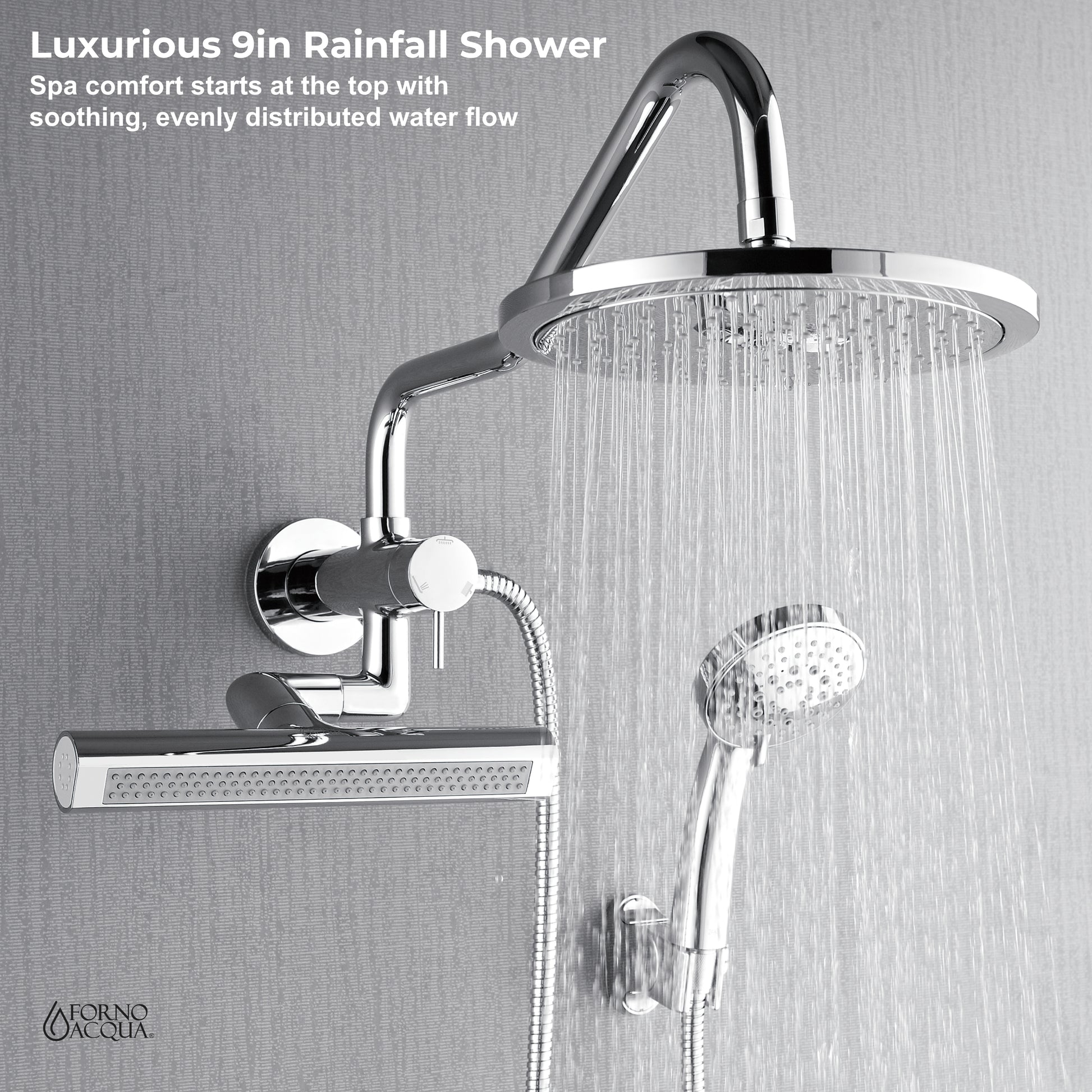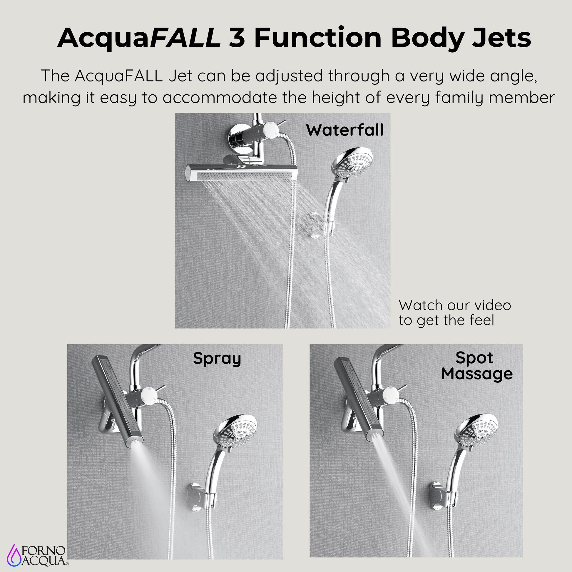Forno Acqua AcquaFALL Mini Shower Head, Polished Stainless Steel Finish, Overhead Rainfall Shower, 7 Way Diverter, Handheld Shower Head, Body Jets, 2.5 GPM Flow Rate