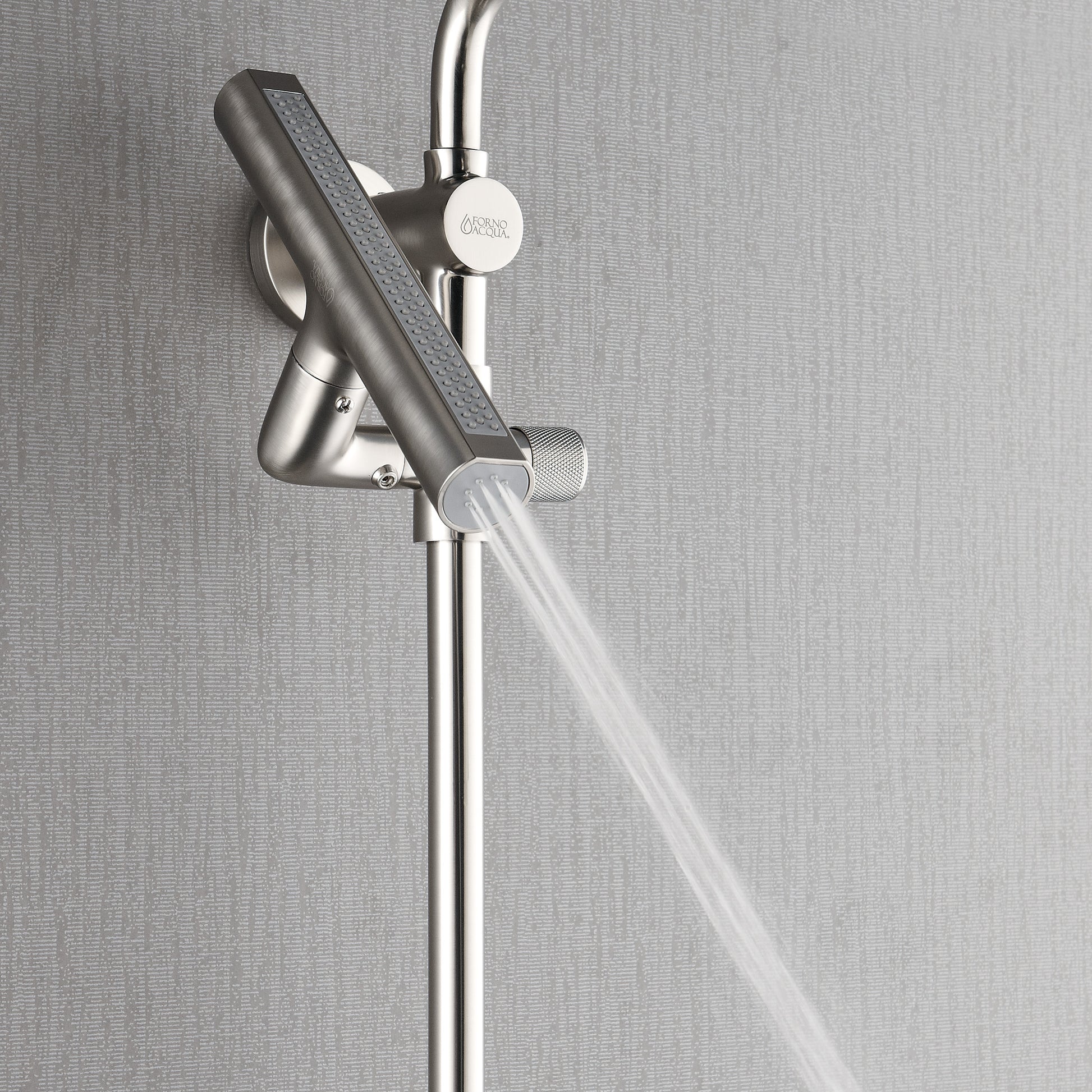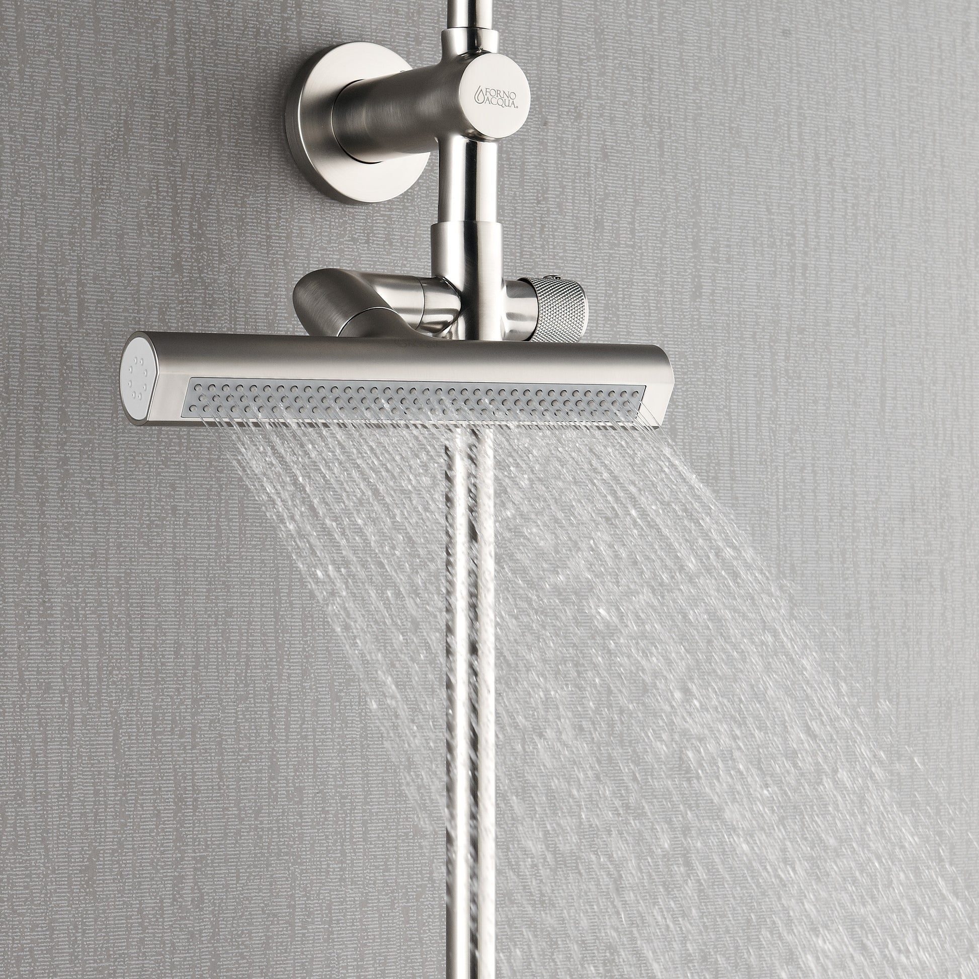 Forno Acqua AcquaFALL Shower, Brushed Nickel Finish, Overhead Rainfall Shower, 7 Way Diverter, Handheld Shower Head, Body Jets, 1.8 GPM Flow Rate