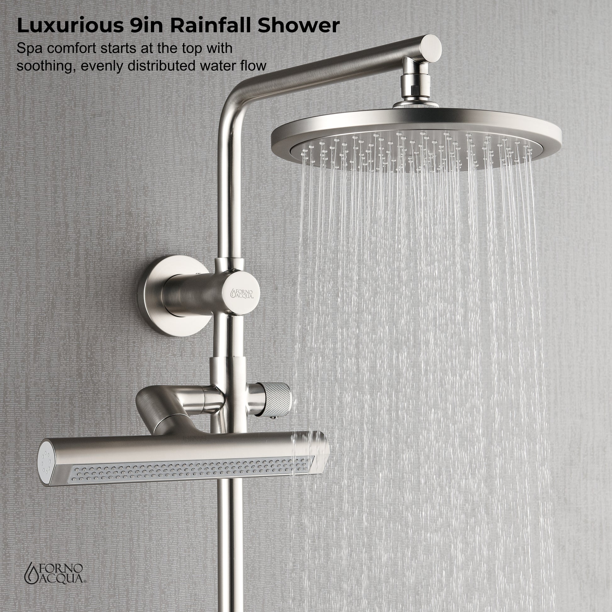 Forno Acqua AcquaFALL Shower, Brushed Nickel Finish, Overhead Rainfall Shower, Handheld Shower Head, Body Jets, 1.8 GPM Flow Rate