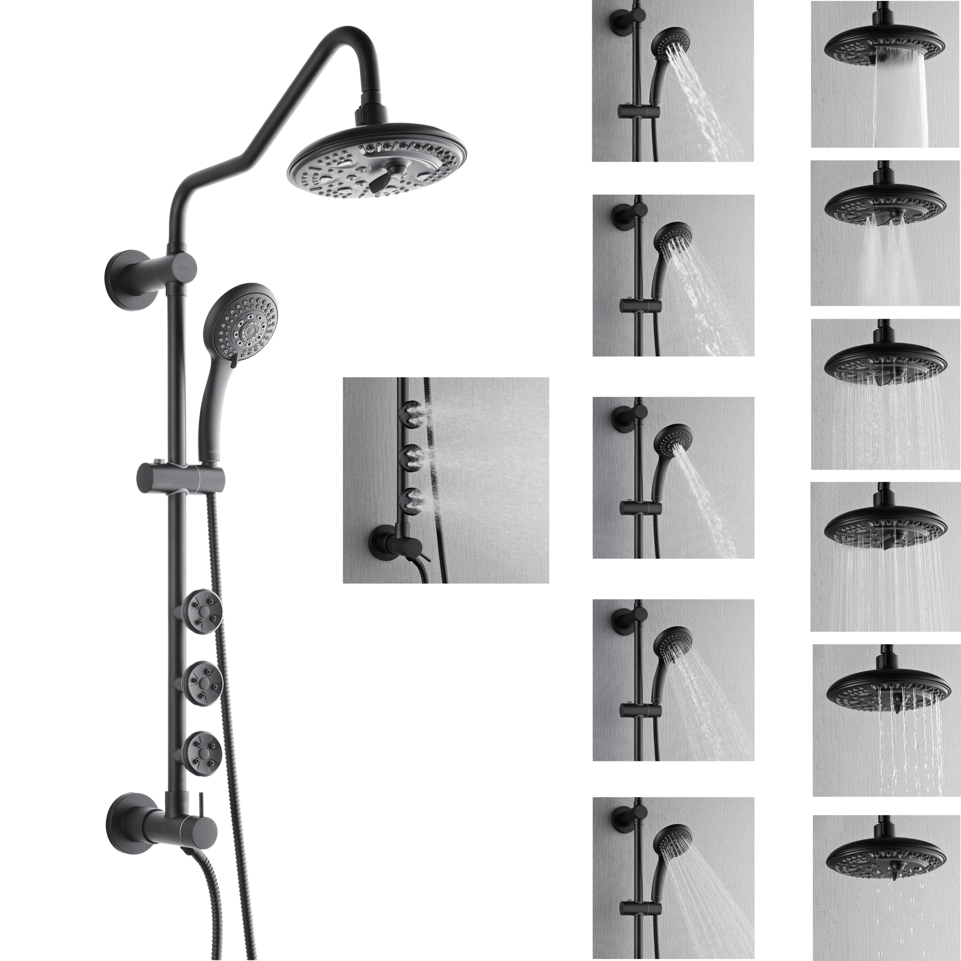* 6-Way Diverter Offers Full Control of Shower Functions: Switch with ease; rain shower, handheld, or jets. Mix and match for a custom spa feel.