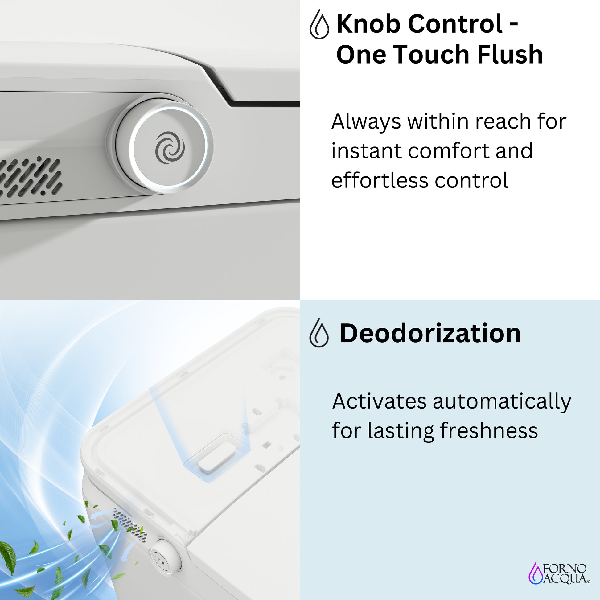 * Touchless Walk-Away Flush – AcquaSMART triggers a smart dual flush when you step away or tap the foot sensor. Hands-free, hygienic, and effortless