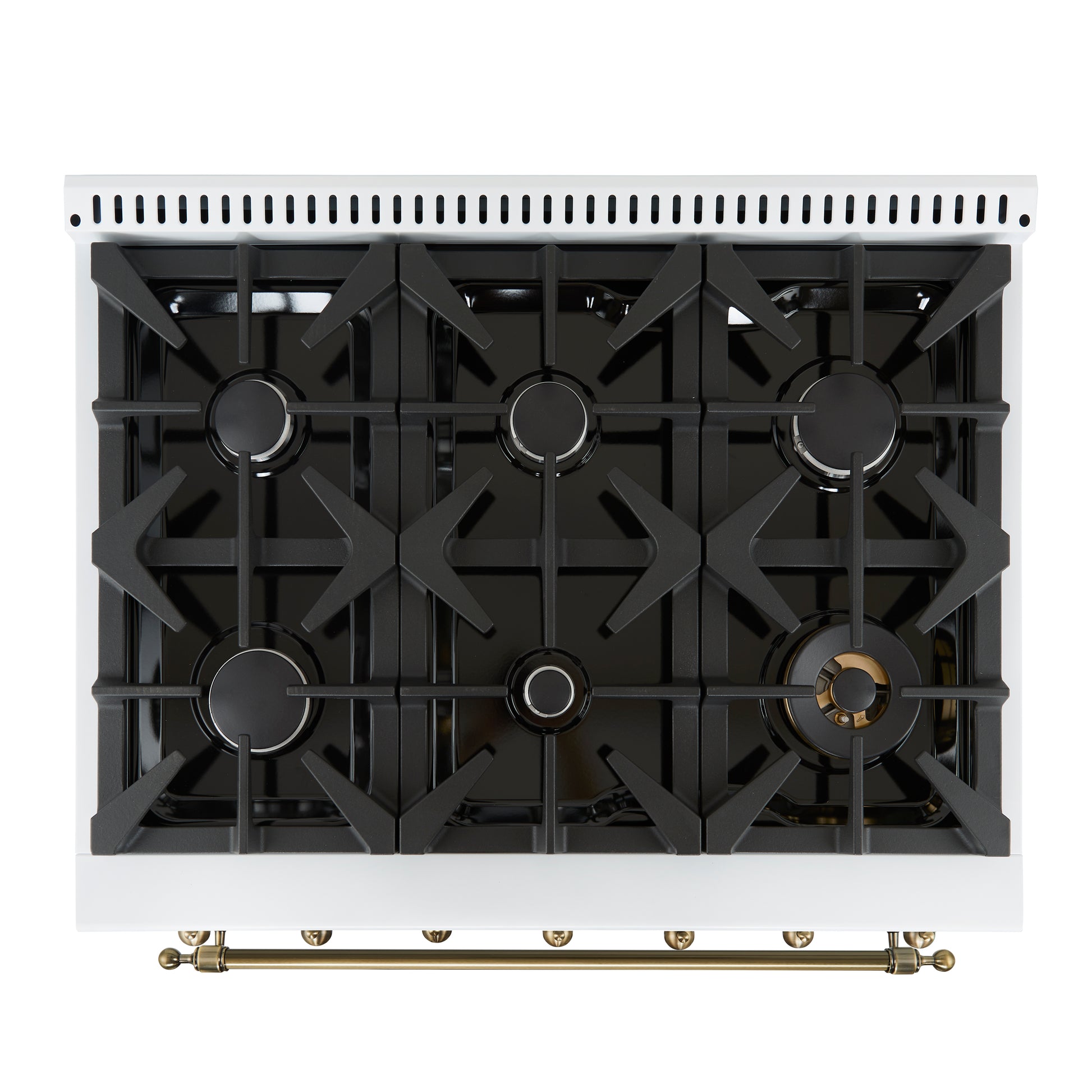 Forno Antico 36-Inch Freestanding Gas Range, White, Antique Brass Design, 6 Burners, Convection Oven, Energy Efficient