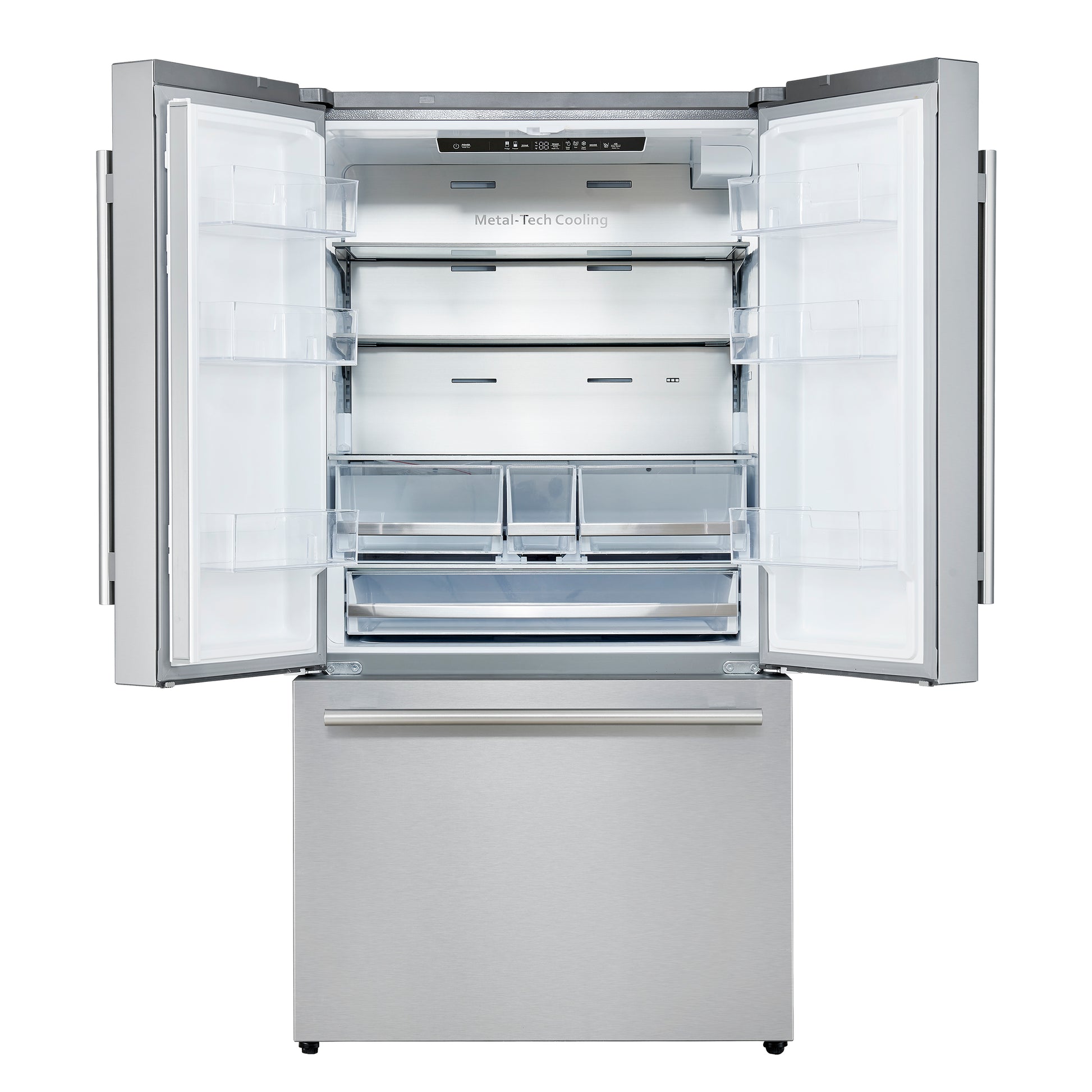 * The 3-tier metal glide drawers provide ample space for large frozen items, ensuring smooth, easy access and secure storage.