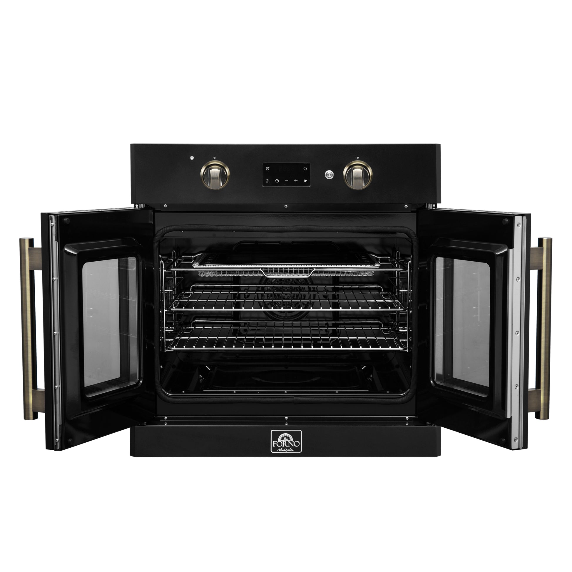 Forno Asti 30-Inch French Door Electric Wall Oven in Black & Antique Brass, 3.68 cu. ft. True Convection, 3,600W, Air Fry, Sous Vide, Self-Clean