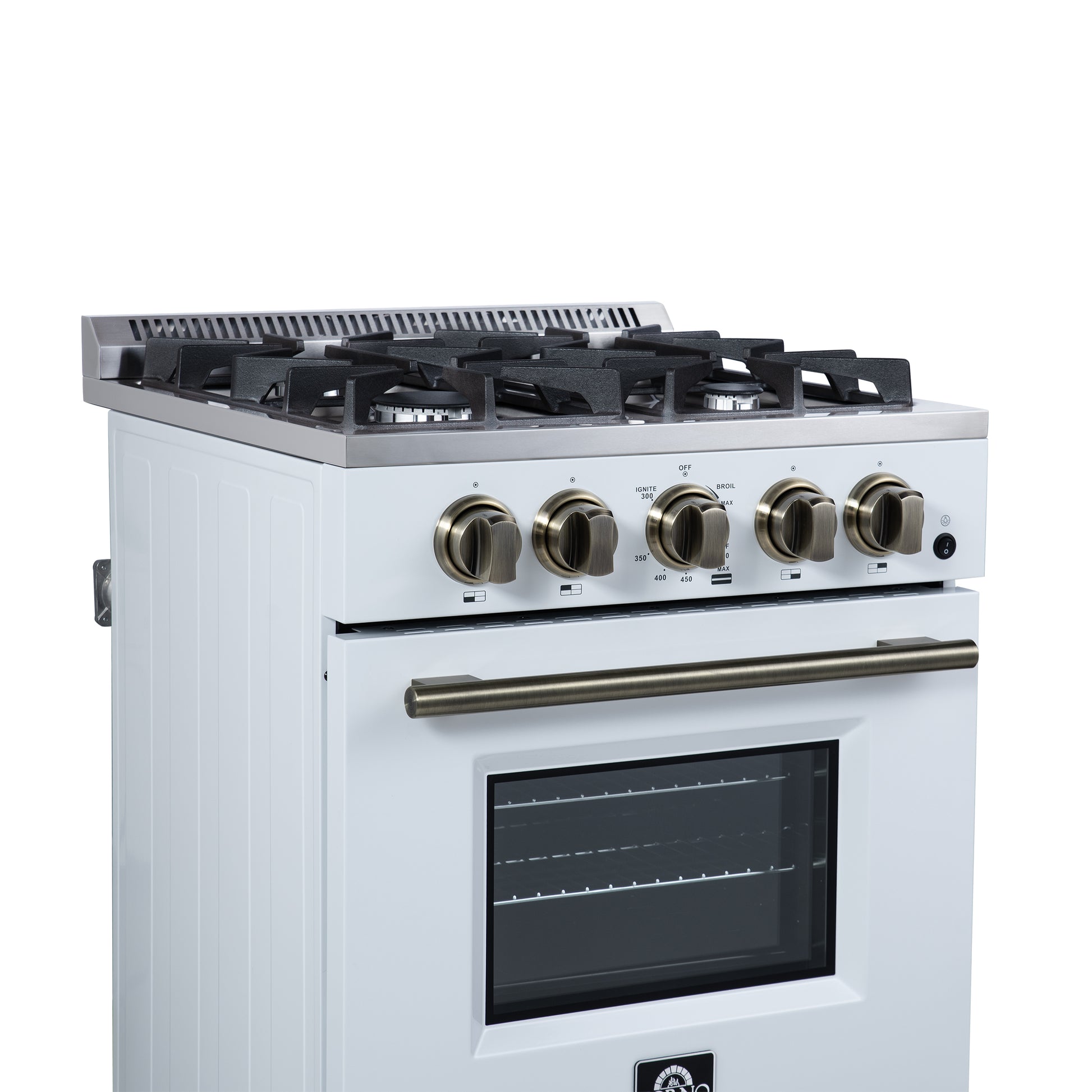 Forno Breno 24 Inch Freestanding Gas Range in White with Antique Brass, Compact Design