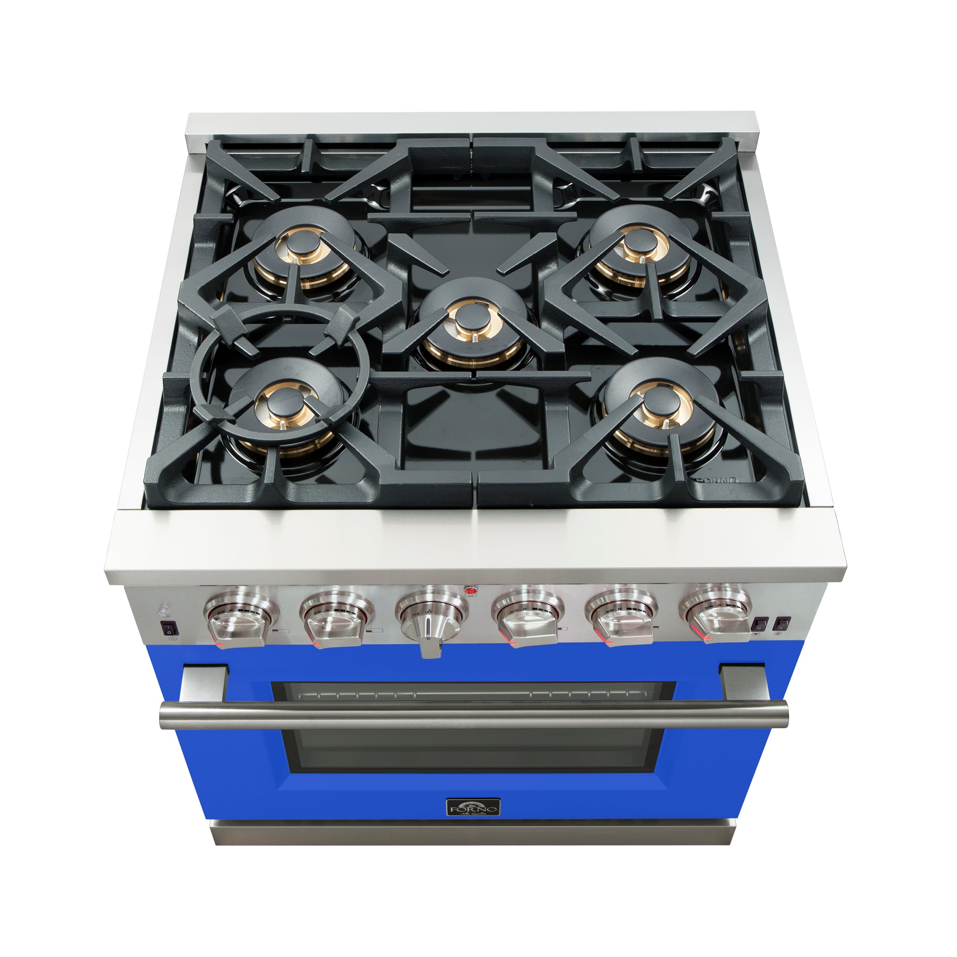 Forno Capriasca 30-Inch Freestanding Gas Range, 4 Burners, True Convection Oven, Blue DoorFFSGS6260-30BLU