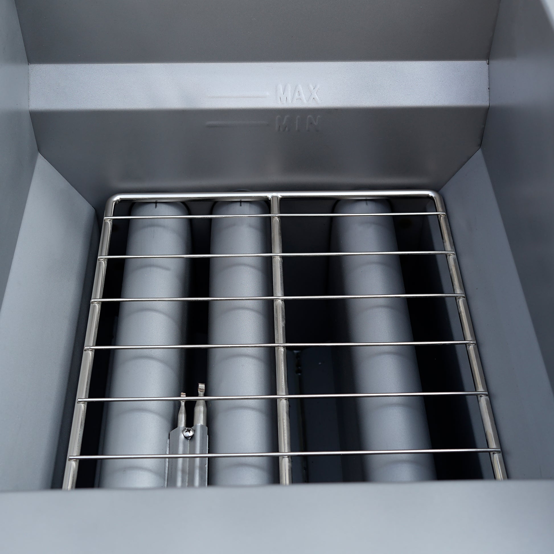 * Powerful Four Stainless Steel Burners: Equipped with four 30,000 BTU burners, this fryer delivers exceptional power to handle high-volume orders seamlessly.