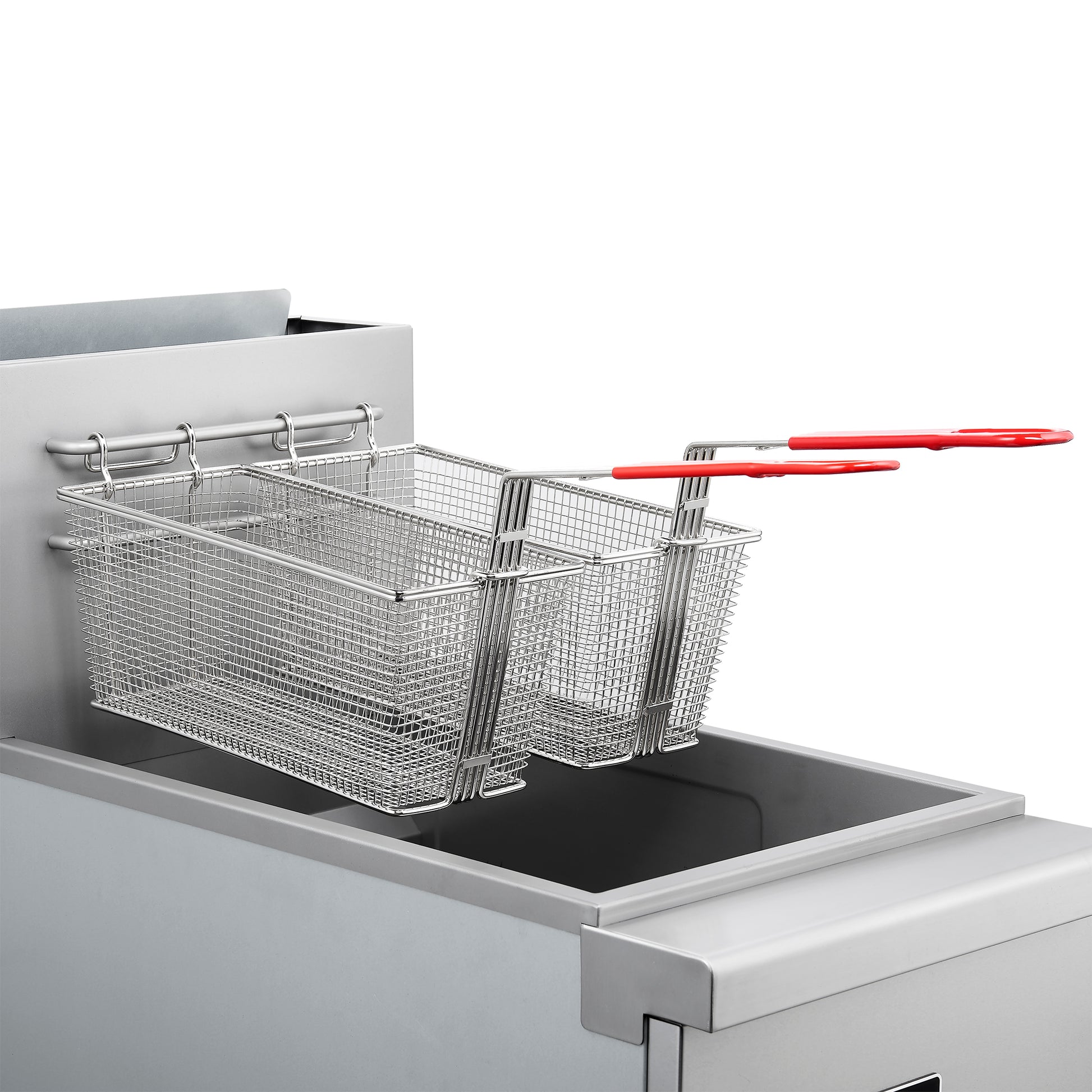 * Convenient Basket Hangers: Keep your workspace tidy and enhance oil drainage by hanging baskets on the side of the fryer, freeing you to focus on other tasks.