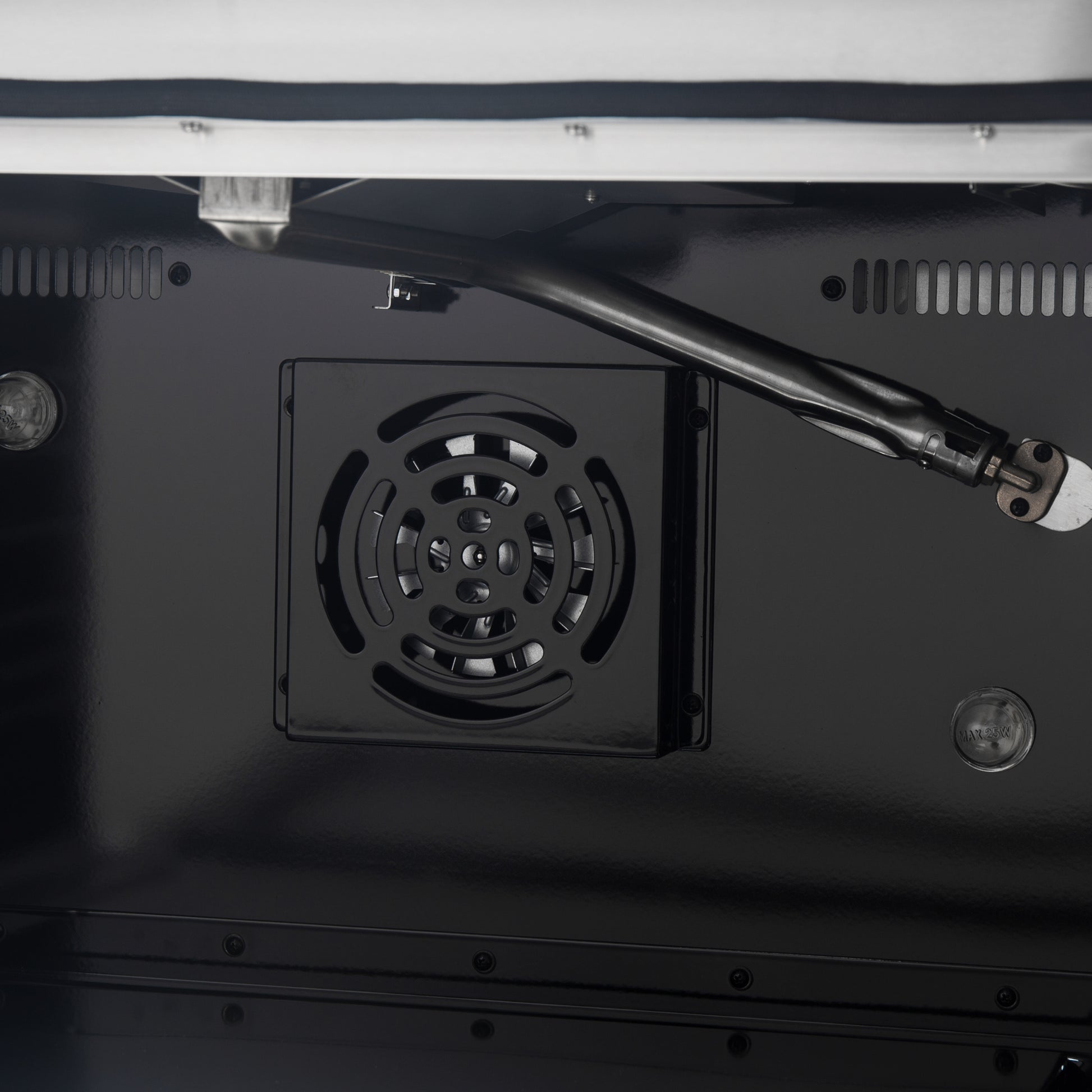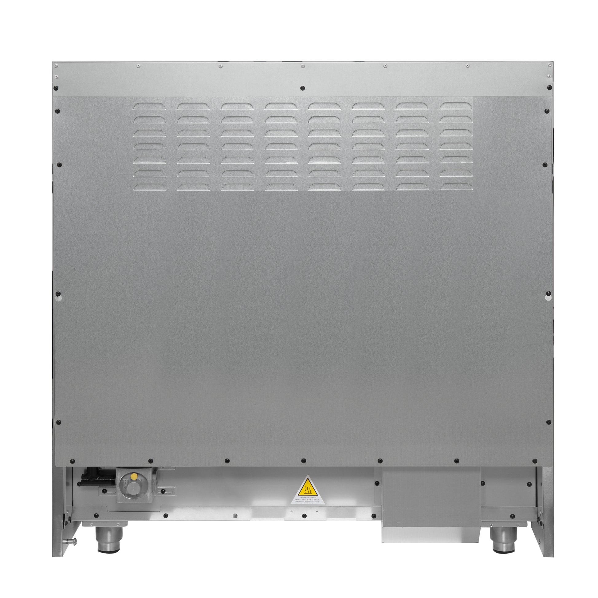 * Continuous cast iron grates ensure stability and even heat distribution across the cooktop.