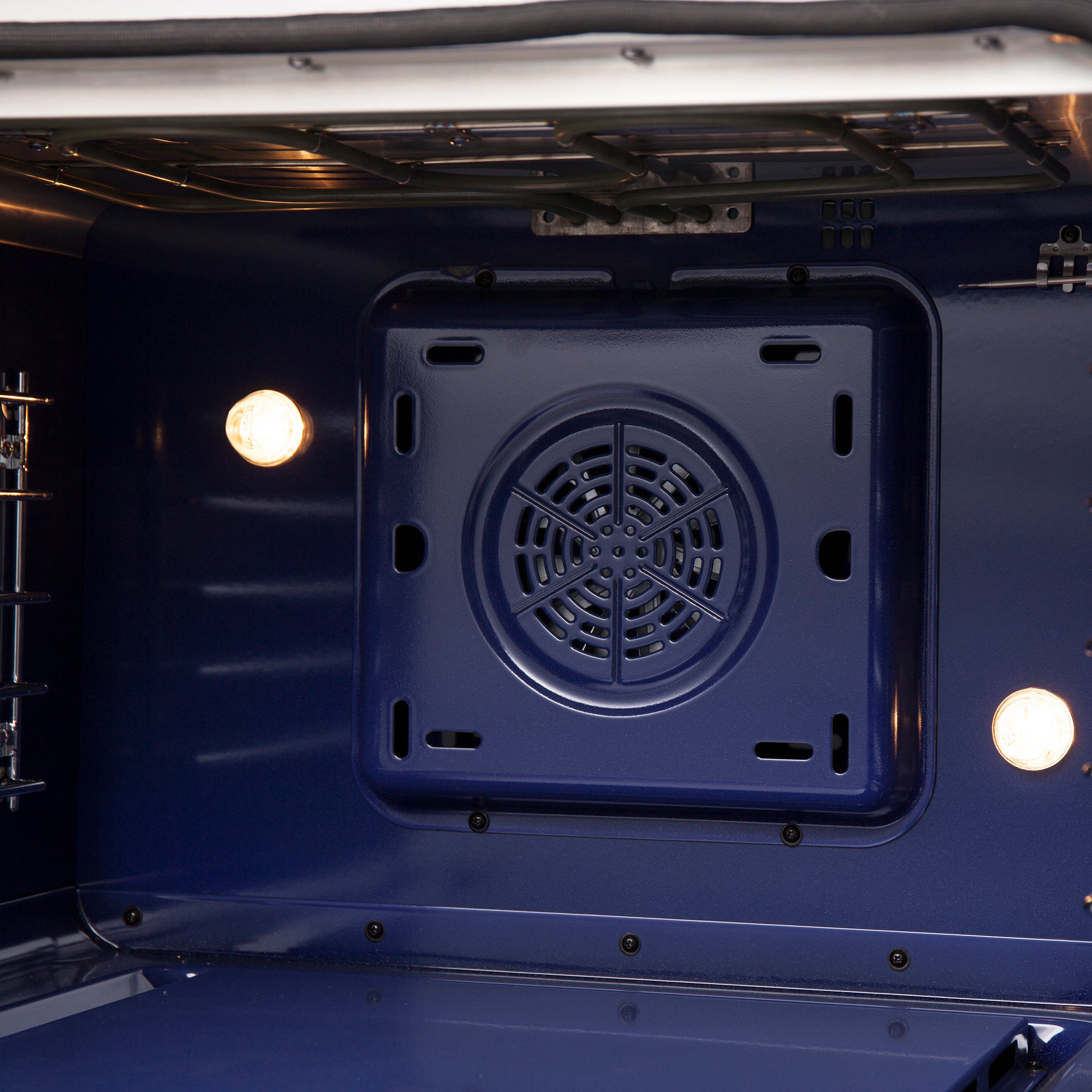 * 4.32 cu.ft speckled blue true convection oven with 6,300 Watts total broil and bake output