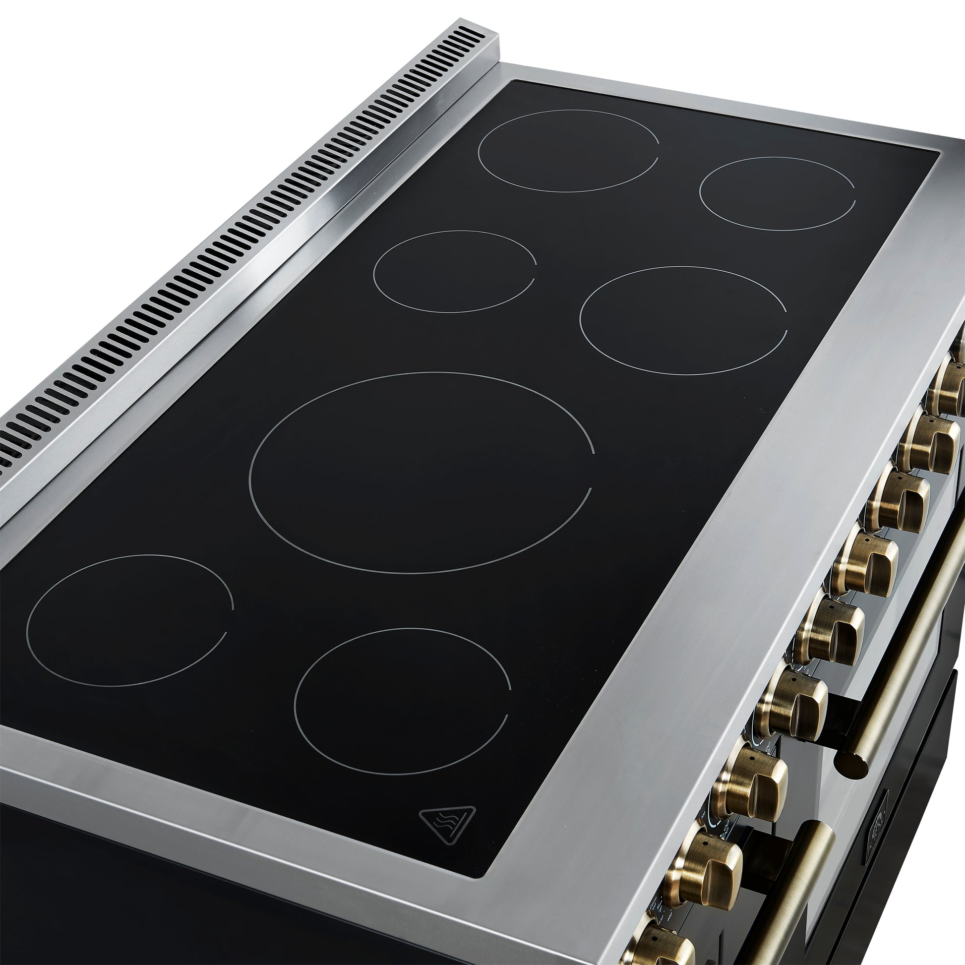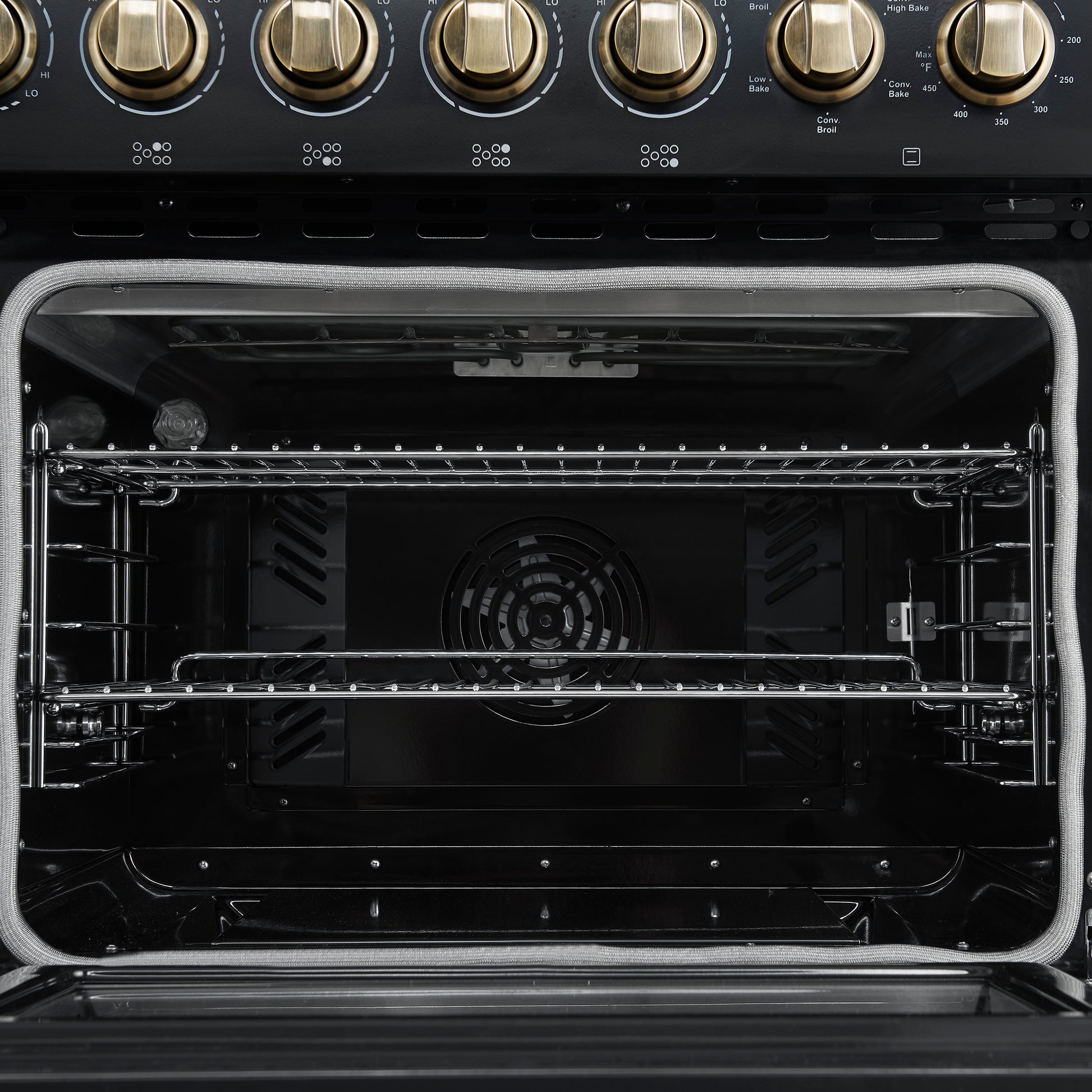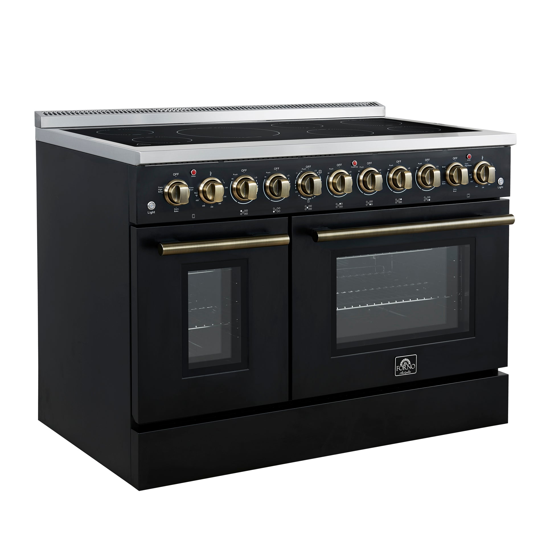 Forno Paolo 48 Inch Freestanding Electric Range in Black with Antique Brass, 6.7 cu.ft, True Convection Oven, Energy Efficient